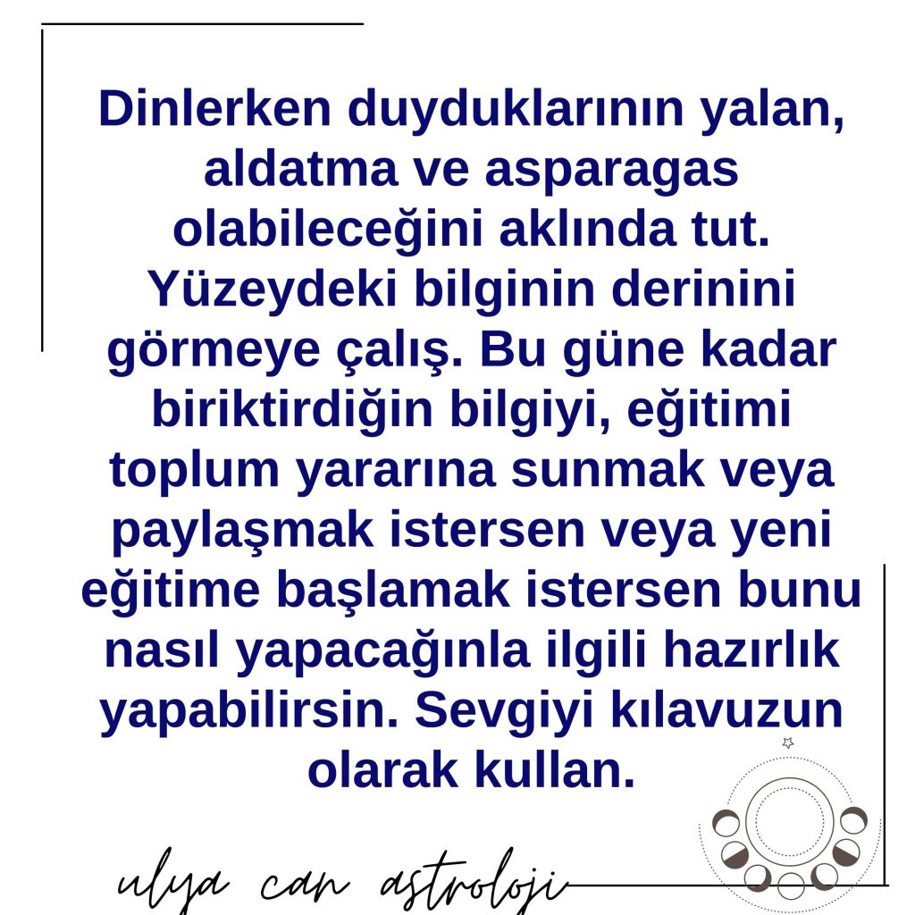 Ay tutulması haritasında Jüpiter Balık burcunda , çok kuvvetli bir noktada. Yay burcunun yöneticisi olarak yukarda yazdığım etkileri büyütebilir, veya çok yüksek bir ruhsallık çalıştıracağı için farkındalıkla birlikte gerçek bir aydınlanmaya yardımcı olabilir.