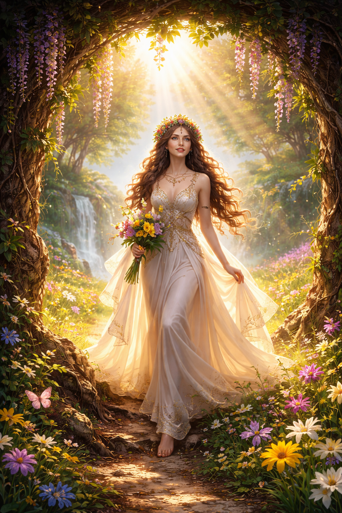 Persephone, bereket ve tarım tanrıçası olan Demeter’in kızıdır. Genç, güzel ve ışık dolu bir tanrıçadır. Baharın, çiçeklerin ve doğanın uyanışının sembolü olarak görülür.